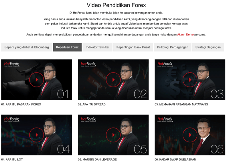 FXTM mempunyai bahan latihan yang hebat untuk membantu pedagang baru bermula. Bahan-bahan merangkumi artikel, webinar, dan glosari kosa kata baru. Terdapat set video tambahan yang melitupi topik berkaitan analisis, dan lebih lanjut tentang teknik membaca carta.